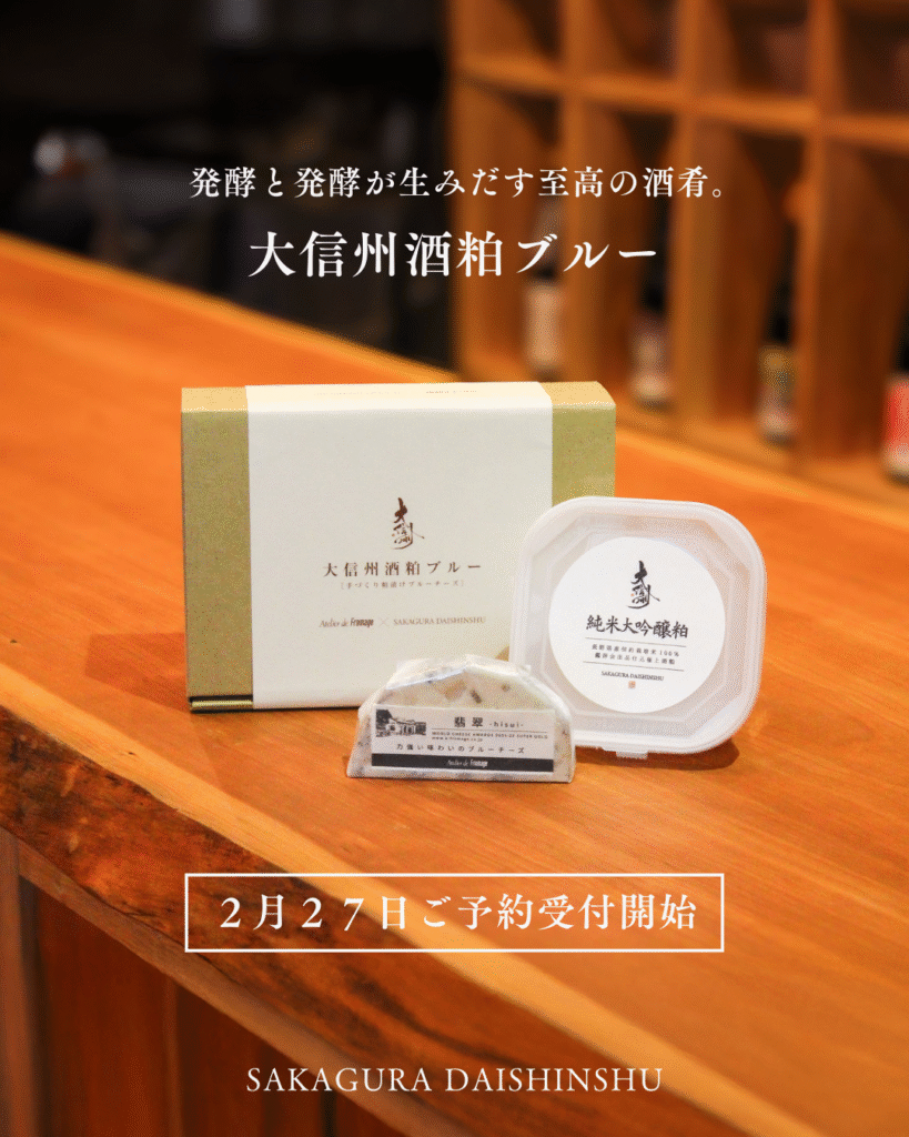 大信州の日本酒に合う酒肴を求めて出会ったのがアトリエ・ド・フロマージュです。チーズを文化にという思いのもと、原材料と製法に真摯に向き合う姿勢、作り出すチーズのおいしさに感銘を受け、発酵×発酵の酒肴づくりははじまりました。